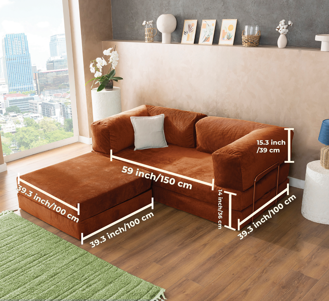 Product overall dimensions of Poufudic Sofa with Ottoman: (200 x 100 x 35 cm / 78 x 39 x 14 inch)